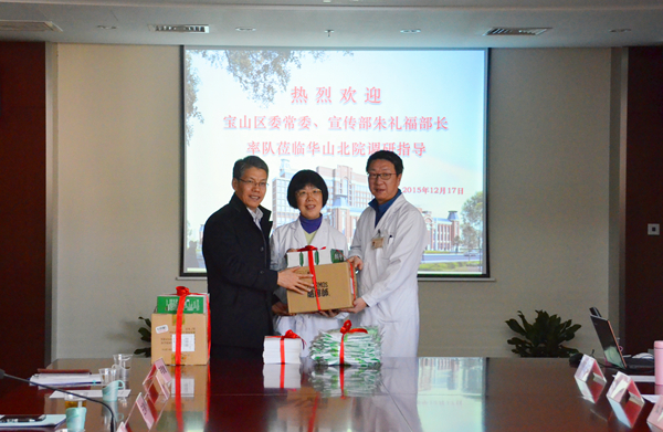 12月17日,宝山区委常委、宣传部部长朱礼福,区宣传部副部长、文明办主任王佩桦以及顾村镇党委副书记孙晋等一行8人莅临华山北院,对“家门口的心连心诊室”及北院志愿者工作进行调研。北院常务副院长汪志明、党委常务副书记邹和建,党政办、护理部、门急诊部等职能部门负责人及部分临床科室主任一同热情接待了来访的区委领导。