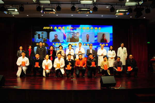 一曲激昂的《精忠报国》表达了后勤员工为“打造一支与医教研实力相匹配的后勤队伍”的干劲与决心,一场15分钟的“新闻联播”回顾了2015年度后保系统员工围绕医院中心工作和JCI评审开展的各项工作,展现了朴实奉献、团结奋进的精神风貌。后勤、保卫部门的logo、宗旨、愿景、理念等文化内容一一呈现,让大家耳目一新。靳建平副院长宣读表彰决定后,先进班组、优秀员工得到隆重表彰:动力维修科锅炉房、动力维修科冷冻组、总务科机动组、总务科氧气间、分部总务科维修组、置友物业卫勤专项组、置友物业0、2、3、8号楼电梯组、西部物业5号楼维修班组、西部物业应急小分队、东院专项保洁队10个班组获先进集体,40名立足本职、主动周到服务的员工分获十佳服务标兵、十佳敬业模范,十佳管理骨干、十佳技术能手称号。