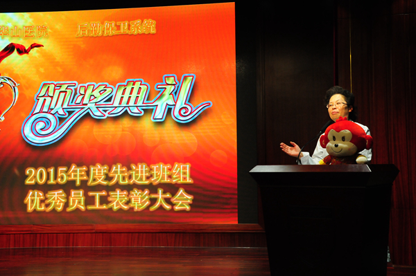 2月4日下午,华山医院后勤保障部与保卫处在门诊12楼会议厅举行了2015年度“后勤保卫系统先进班组、优秀员工”颁奖大会。党委书记顾小萍、副书记耿道颖、副院长邵建华、马昕、靳建平及部分临床科室、职能部门领导与160余名后保系统员工济济一堂,分享一年来的成绩与喜悦。后勤党支部书记侯占伟首先致辞,来自总务科、装备科、基建科和保卫处的4位年轻人盛装主持。