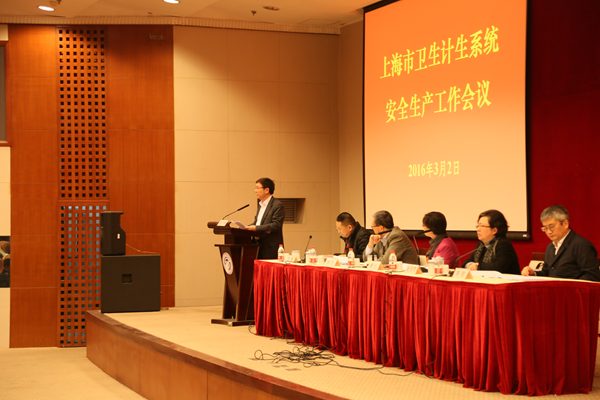 上海市卫生计生系统2016年第1次安全生产工作会议3月2日下午在交大医学院召开,市卫生计生委规划财务处王惟处长主持,市卫生计生委黄红书记、市卫生计生委安全生产领导小组组长肖泽萍副主任等领导出席会议并讲话。华山医院靳建平副院长受邀在会上做交流发言。