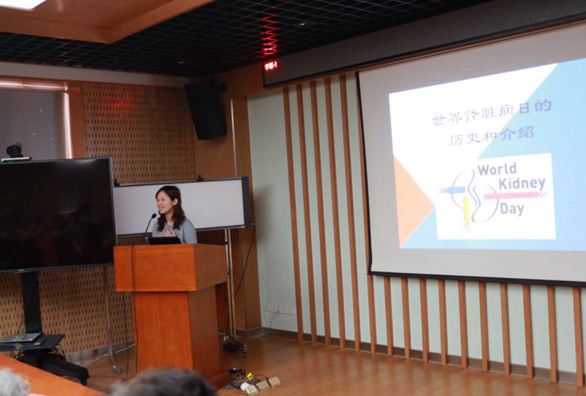 肾脏科副主任陈靖教授主持了此次“聚会”。张敏敏副教授介绍了世界肾脏日的历史,科普了肾脏病的防治重在预防;黄碧红护士长将华山血液净化室的透析质量与上海及世界发达国家进行了比较,感谢在医护患的共同努力下,华山的透析质量已达国际领先水平;张倩主治医师深入浅出地介绍了高磷血症的危害和治疗,重点介绍了降磷的方法和技巧,实用易记、可操作性强;医务社工梁潇云从提高肾友生活质量的角度讲述了透析肾友的居家生活和心理调试。