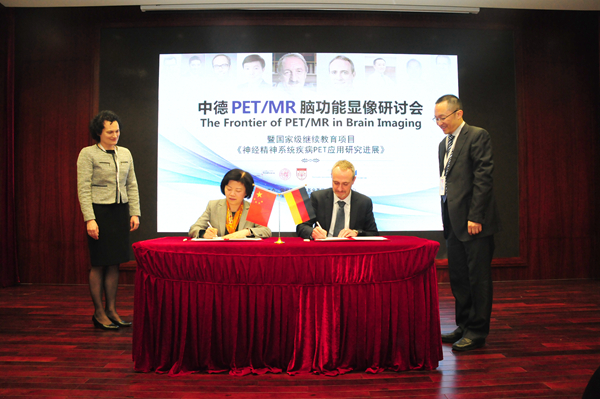 3月13日-15日,由国家自然科学基金委员会中德科学中心与复旦大学附属华山医院共同主办的“中德PET/MR脑功能显像研讨会暨国家级继续教育项目《神经精神系统疾病PET应用研究进展》学习班”在华山医院举行。来自中国、德国和美国知名医疗与学术机构的数十位影像学、神经病学、精神病学、医用物理学、放射药剂学和计算机科学领域的顶尖专家们共聚一堂,聚焦“帕金森病、阿尔茨海默综合征等神经退行性疾病的早期影像学诊断”及“恶性脑肿瘤的影像学诊断”等世界难题,通过组建跨国、跨学科的PET/MR脑影像研究团队,促进中德两国相关领域合作研究网络的建立,更好地服务于两国患者。