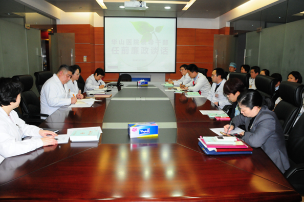 为进一步增强新任干部廉洁从政、廉洁行医意识,提高拒腐防变的能力,3月23日,华山医院党委对26名2016年新任职干部进行了上岗前集体廉政谈话。