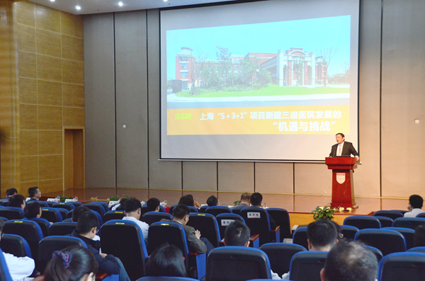 4月12日,上海市5+3+1郊区新院“机遇与挑战中前行”医院管理研讨会在华山北院成功举办。市六东院常务副院长范存义、副院长邓志峰,仁济南院副院长沈洁、陈尉华,瑞金北院副院长陈海涛,华山北院常务副院长汪志明,副院长朱会耕、钟良,总会计师张强以及来自郊区新院的职能部门负责人、华山北院中层干部等百逾人参加了此次研讨会。