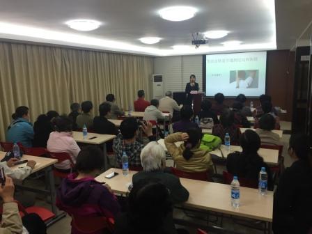 华山医院“合理用药促进月”活动进入第三年。启动于4月11日的第三季“合理用药促进月”活动在院文明办的牵线搭桥下,于4月21日下午,第一次走出医院、走进社区,来到了“同心家园”共建的静安寺街道社区党建服务中心。皮肤科陈琴怡博士用生动活泼、通俗易懂的语言,寓教于乐地为社区40余名中老年居民作了一场“皮肤科常见病用药指导”的科普讲座,介绍了皮肤科常见病、生活注意事项并指导合理用药。课后,陈博士与居民们热烈互动,医院为社区居民精心准备的“神秘小礼物”——华山皮肤科自制制剂,也受到了听众的热烈追捧。