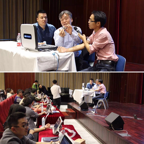 作为本次学习班的另一重要环节,首都医科大学附属北京朝阳医院超声医学科主任、中国超声医学工程学会肌肉骨骼专委会主委郭瑞君教授为学员们带来了肌肉骨骼超声这一技术临床应用解析,肌肉骨骼超声技术是超声医学科一项比较成熟的技术,但是在康复领域应用还相对较少,随着康复医学发展日益完善,肌肉骨骼超声作为介入技术在运动和神经系统的止痛药物和肉毒素注射中起到了重要的导引作用。随着康复医学的发展,对于康复医生临床操作要求也越来越高,郭教授从肌骨超声的理论基础到仪器的基本操作,细致地将这一技术传授给在场学员,现场互动热烈。