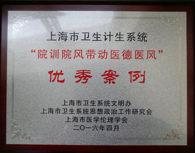 在4月19日召开的上海市卫生计生系统医疗管理与精神文明、政风行风建设工作会议上,“感动华山、天使礼赞”案例获“院训院风带动医德医风”优秀案例,华山医院的“慢病相对时空”项目入选首批“医疗服务品牌”。
