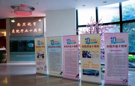 2016年4月28日是华山东院开业十周年的日子,东院党政工团联手,用自己的方式庆贺大家庭的生日!员工们积极参与征文与照片征集活动,用文字写下十年的变迁与心灵的感悟,用镜头捕捉岁月的痕迹与时光的流逝,在网上投票选出自己喜欢的文章与照片,将优秀的文章与照片展示在东院大堂,让来来往往的同事、病人都能一起分享庆生的喜悦。4月28日这一天,传统的运动会如期举行,员工们跳长绳、两人三足比赛,在汗水与欢笑中,相伴度过难忘的第一个十岁生日。
