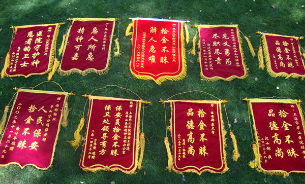 事实上,这样拾金不昧的故事在华山医院不胜枚举,保卫处和西部物业保安部通过建立失物招领的机制以及加大楼面巡逻力度,加强安全防范,很大程度上保护了病家的财产安全。据统计,近3年保卫处就共计归还失主现金14万余元,平板电脑10余台,手机30余部,身份证、银行卡及各类证件3000余张,收到锦旗9面,表扬信20余封。