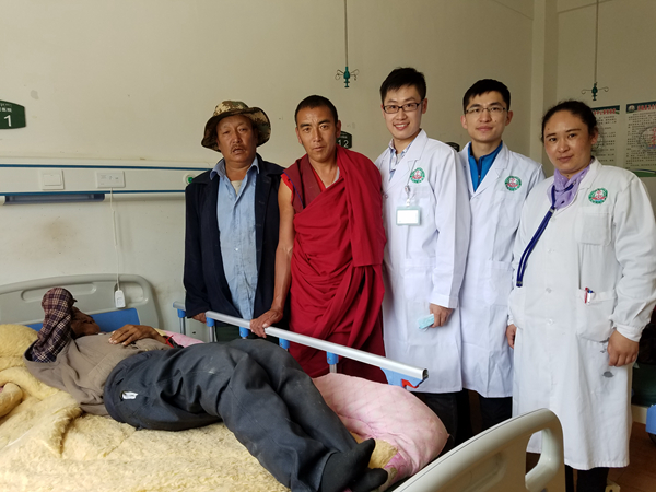 简单询问了病史,鉴于当地医护人员反复尝试导尿未成功,罗医生第一时间联系了我们医疗队员。我因为正好是泌尿外科医生,听到这种情况,立即起身迅速赶往离住处1.5公里石子路的医院,忍受着初到高原带来的不适,赶到病床前。