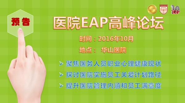 华山医院工会计划在今年10月主办“首届中国医院EAP峰会”,在上海创立“医院EAP”联盟,领衔推动中国医院员工关爱的全面持续规范开展,造福华山人,服务上海乃至全国同行。
