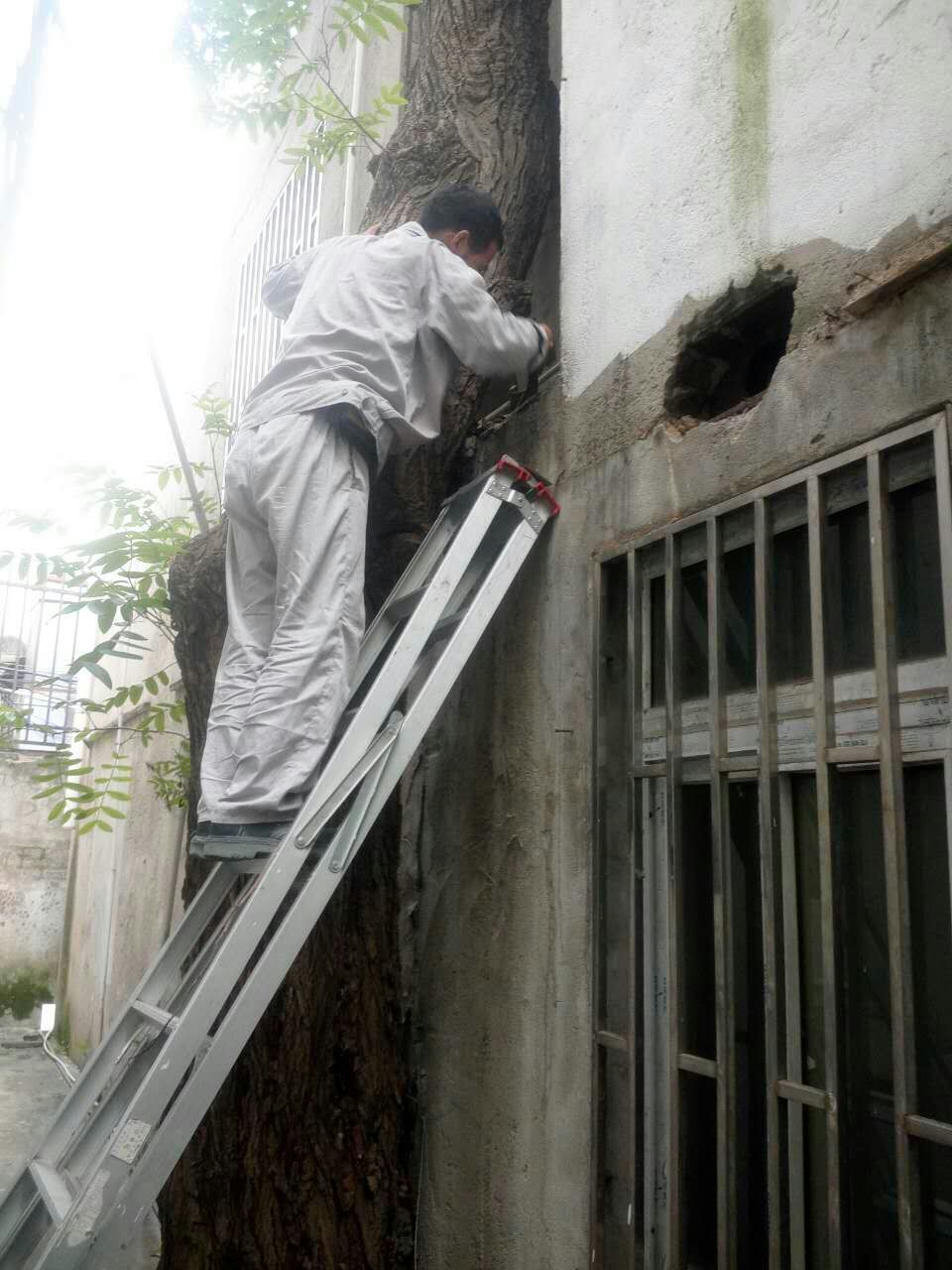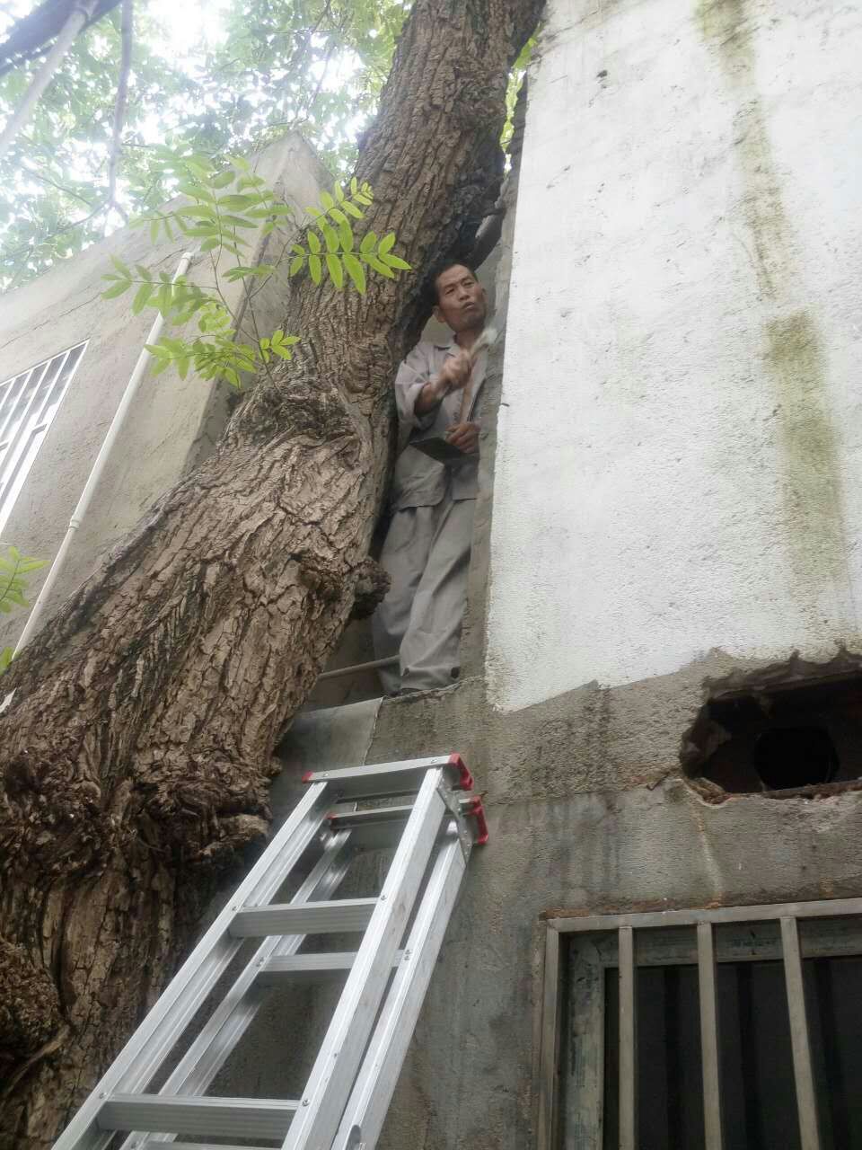 除了空调维修工,头顶烈日坚守岗位的还有大修维修人员。15号楼一颗大树也忍受不了室外的炎热天气钻进了房间,6号楼棚顶需要维修,病房外墙发霉需要粉刷等等,每天都有那么几起要他们处理。为了保障房屋结构的安全,大修人员顶着室外阳光的炙烤在房顶、在屋梁上上下下,毫无怨言地爬上晒得滚烫的维修梯。在他们黝黑的脸上,看到的是对安全与责任的执着和坚守。