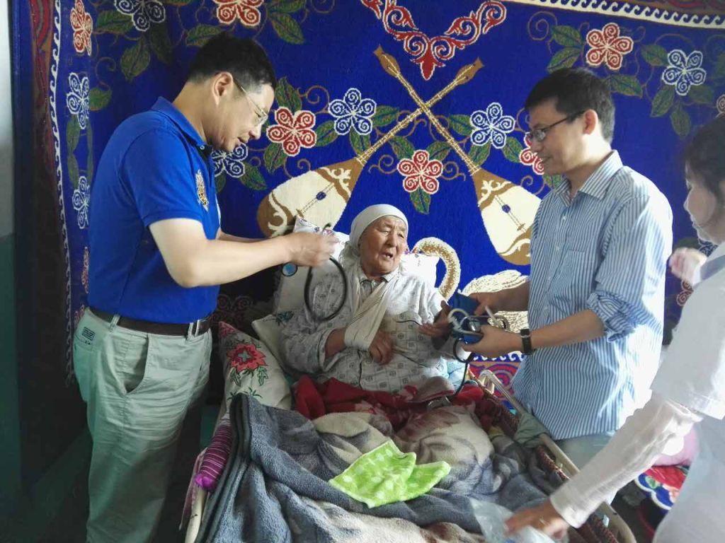 受院党委派遣,7月25日~29日,华山医院内科专家罗心平和赵晓龙参加上海市侨办边疆送温暖医疗队,在祖国中蒙边境上、大漠深处、戈壁腹地的新疆维吾尔自治区、北塔山牧场,深入牧区到牧民家中诊疗、到边关哨所义诊、为基层卫生人员培训,把党的温暖、上海人民的深情、华山医院的精湛医术送到了祖国的边疆,受到了哈萨克牧民的热烈欢迎。