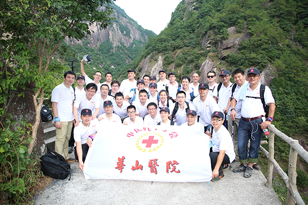 养兵千日,兵如何养?8月18日中午1时许,40余名华山医院国家紧急医学救援队员及红十字国家医学救援队员在马昕副院长的带领下,携带救援装备,前往徽杭古道,开始了为期2天的野外拓展体能拉练训练。市卫计委应急办副主任徐昌应邀进行全程现场指导,院工会常务副主席苏家春和医务处处长王惠英一同带队参与。
