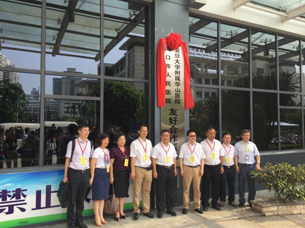 距离7月8日华山医院与海口市卫生局、海口市人民医院签署合作协议仅仅过去了49天,8月26日上午,华山医院与海口市人民医院缔结为“友好合作医院”揭牌仪式在海口市人民医院举行。海口市委常委、副市长巴特尔主持揭牌仪式,市委副书记、市长倪强和华山医院院长丁强在揭牌仪式上致辞,华山医院马昕副院长、耿道颖副书记及专家团队一行16人出席。丁强院长与海口市人民医院院长杨毅军在“友好合作医院”协议上签字。