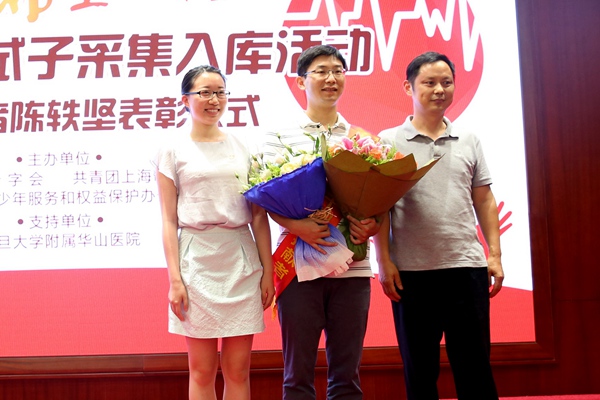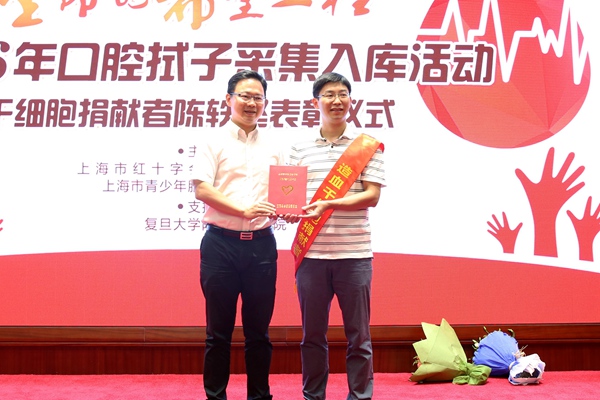 9月2日上午,中国造血干细胞捐献者资料库口腔拭子采集入库暨造血干细胞捐献者陈轶坚表彰仪式在华山医院门诊12楼会场举行。上海市红十字会副会长张钢,共青团上海市委员会党组成员、挂职副书记丁波,华山医院党委书记顾小萍,副院长邵建华,静安区红十字会副会长徐红光和共青团静安区委副书记吴佳妮等领导出席,华山医院参与口腔拭子现场采集的员工、部分区红十字会和医疗机构代表、媒体代表等应邀参加。