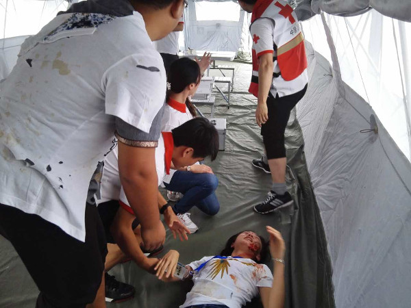 在最后的实战演练中,所有队员被分为攻守两方,攻方设计各类灾民、媒体记者、伤员等复杂病例冲击野战医院;而守方则要利用有限的设备仪器,规划合理且有效率的野战医院救援流程,随机应变各类突发事件。专家组全程跟踪每一个病例,记录病人的处置流程。总结会上,专家组与攻守双方共同探讨,流程的细节剖析使得救援队员对于医疗救援的认识达到了一个新的高度。