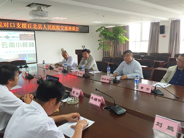 捐赠仪式后,双方还就党建文明、医疗管理、后勤保障、人才培养等方面进行了深入的互动和交流。邹副书记代表丁强院长、顾小萍书记向丘北县人民医院同仁献上了最诚挚的中秋祝福,并率党办、医教部、人力资源部和后勤保障部负责人等一行对已在丘北工作了近三个月的北院医疗队员进行了慰问,感谢他们的大爱无疆和无私奉献,为医院的对口支援工作开了好头,打下了良好的基础。