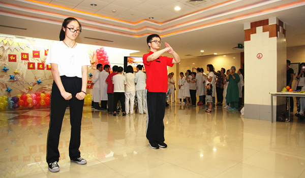 开场是7位实习生带来的集体舞《push push》,青春活泼,让大家目不转睛又笑声不断。惊艳的结束动作后,两位主持人上台点题,“和你一样,为你鼓掌”表明了中心所有医技护人员与病人的目标与努力都是一样的,在被病人锲而不舍的精神感动之余,也总想为他们鼓掌。朱玉连副主任的一番致辞充分表达了对病人的关怀之心和祝福之情,想病人所想,愿病人所愿,也再次让大家激动不已。实习生和病人联手为大家带来歌曲表演《中国功夫》,两位同学的跆拳道和武术表演让台下的观众连连叫好,有构音障碍的患者也丝毫不胆怯,在家属和同学的陪同下唱完了整首歌,赢得了众人的掌声。