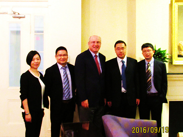 9月19日,华山医院感染科陈明泉教授、抗生素研究所黄海辉教授、消化科陈坚副教授和神经外科徐宏治副教授一行4人抵达波士顿的麻省总医院(MGH),开始了为期3个月的进修学习,受到MGH院长兼首席执行官Peter L. Slavin教授的会见,并一同在董事会门前的盛鼎旁合影留念。这是2011年MGH建院200周年庆典上华山医院老院长徐建光教授的贺礼,成为了董事会门前的风景。
