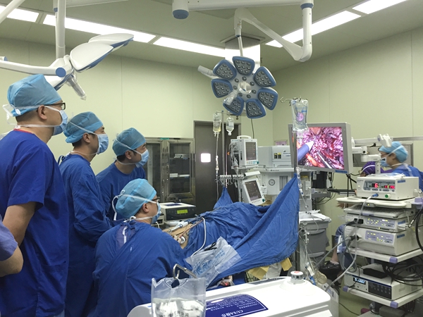 10月24日,在华山医院普外科主任钦伦秀教授和儿科医院郑珊教授主持下,由普外科陈进宏教授、陆录医生和陶一峰医生组成的“腹腔镜供肝获取团队”,与由王正昕教授、沈丛欢医生和儿科医院陈功教授组成的“儿童肝移植团队”通力协作,成功完成了首例全腹腔镜下活体供肝切取手术和儿童肝脏移植手术。这是肝胆外科“微创”(腹腔镜)技术和“巨创”(肝移植)技术的完美结合。