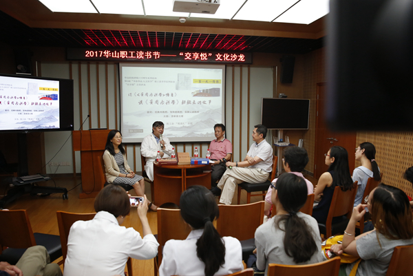 又到盛夏,墨香扑鼻,书浪来袭。华山爱书人一年一度的盛宴——第6届“书香华山•人文医学”华山医院读书节再度回归。活动由院工会与“悦读汇”社团共同举办,除了华山职工书展及推荐书单,今年读书节还举办了4场大“咖”云集的文化沙龙,邀请华山人一起阅读经典,分享体会,亲近生命,体悟人生。
