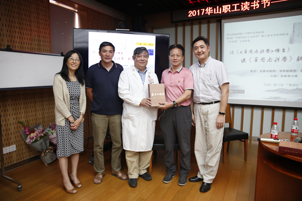 7月19日, “从《<实用内科学>传奇》谈《实用内科学》耕耘者的故事”活动,邀请了《<实用内科学>传奇》作者之一、内分泌科沈稚舟教授,第15版《实用内科学》副主编、我党委副书记、风湿免疫科邹和建教授与《<实用内科学>传奇》主编助理、内分泌科张朝云副教授,细述《实用内科学》一书的光辉历史和人文传承。活动由工会苏家春常务副主席主持,在观摩了《<实用内科学>传奇》纪录片后,三位专家分别从亲身经历谈起,讲述了在著书育人的过程中,几代上医人是如何秉承“正其谊不谋其利,明其道不计其功”的精神,和衷共济、同心同德,完成一版又一版皇皇巨著的,而作为耕耘者,在付出辛劳的背后,他们又是如何从这些经历中收获学术的成长与生命的体验,帮助其成为一名更优秀的人与医者的。