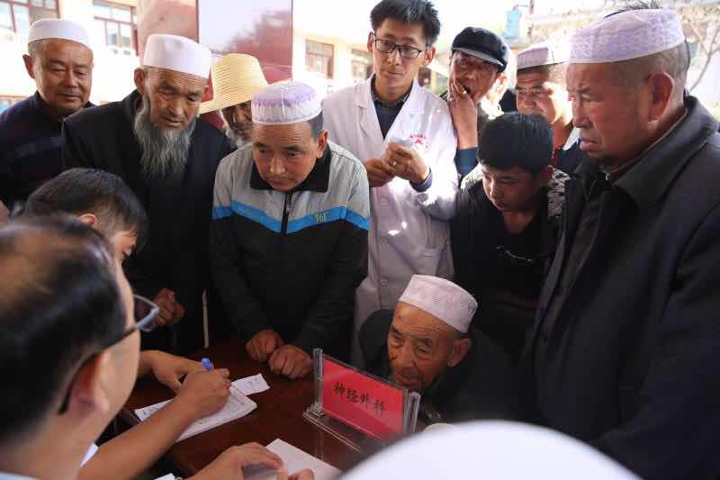一到积石山县,华山医院国家医疗队就深切感受到当地老百姓对医疗的渴求。3天时间里,医疗队在临夏州举行了3场大型义诊活动,共服务患者近2600人,其中在积石山县人民医院的义诊吸引了超过1250人。医疗队还深入到大河家中心卫生院和癿藏中心卫生院举行了义诊,服务患者分别超过680人和560人。大山里闻讯赶来的多民族百姓络绎不绝,在专家的诊位前排起了长队,唯恐错过了见到上海医生的机会。全程陪同医疗队的甘肃省卫计委王晓明副主任说:因为贫困和出行不便,当地百姓对优质医疗资源非常渴望,听说上海的专家要来义诊,很多家庭都是举家而出,有的甚至借了车,翻山跋涉赶来,到医院早早等候。