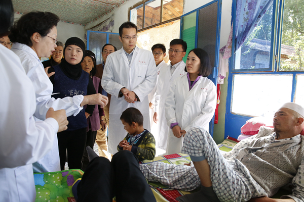 听说很多患者因为行动不便,无法赶来参加义诊,9月11日和12日上午,在甘肃省卫计委王晓明副主任、临夏州卫计委金有录主任的陪同下,顾小萍书记、王晋伦主任、高继明副书记携骨科、神经内科、呼吸科相关学科专家,一同深入到积石山县大河家镇2户和癿藏镇的3户因病致贫、因病返贫的患者家中送医送药、开展慰问。听说很多患者因为行动不便,无法赶来参加义诊,9月11日和12日上午,在甘肃省卫计委王晓明副主任、临夏州卫计委金有录主任的陪同下,顾小萍书记、王晋伦主任、高继明副书记携骨科、神经内科、呼吸科相关学科专家,一同深入到积石山县大河家镇2户和癿藏镇的3户因病致贫、因病返贫的患者家中送医送药、开展慰问。