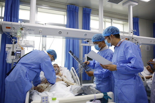 14日下午,神经外科张明广副教授在县医院外科查房过程中,医院急诊收治了一名68岁的脑出血患者。他在剪羊毛过程中突然晕倒,送医院检查后发现颅内有40-50毫升血肿,血压高达210/112毫米汞柱,浅昏迷并有肢体偏瘫。患者有多年高血压、慢性支气管炎、肺心病等慢病,极有可能会继续出血,危及生命。情况危急,张教授与家属取得充分沟通后,决定与县医院神经外科党主任、天津对口支援县医院的李医生一起为患者施行紧急手术。由于医院的手术设备简陋,张教授克服麻醉机故障、双极电凝机器故障、自带的器械和耗材不匹配等重重困难,用最原始的开颅器械进行手术。为了最大可能为瘫痪肢体提供恢复可能,手术采用微创切口,为患者成功清除50毫升血肿,颅内压恢复正常,及时挽救了患者的生命。该例手术成为县医院开展脑出血手术以来用时最短、脑损伤最小的一台手术。更令人振奋的是,术后患者已恢复了神智。15日,张教授在医疗队即将离开永靖县返沪之前,特意再一次赶到县医院ICU,关心患者病情,并指导当地医生的后续治疗。