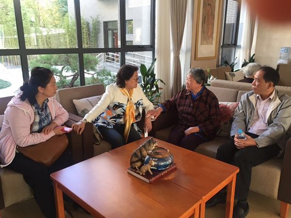 敬老节前夕,门急诊党支部刘斐书记带领支委、门诊部员工一起探望了老职工陈素明老师。陈老师在门诊办公室岗位上一直工作到70岁,是一位地地道道的老门诊人。一见面,分外亲切,陈老师拉着大家的手嘘寒问暖, 89岁高龄的她身体健朗,思虑敏捷,说起过去的事情滔滔不绝,特别关心医院近几年的新发展。门急诊党支部自从与孤老陈老师结对之后,已探望多次,带去医院的关怀与温暖。