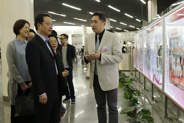 10月20日至30日的“十九大时光”里,2017年“滋人心田”上海市人文关怀心理疏导示范点联展活动在人流量最大的人民广场地铁站隆重举办,向社会各界和广大市民展现上海这座有温度城市的人文情怀,华山医院员工关爱计划展板位于联展前列,苏家春常务副主席向市领导介绍了近年来华山医院聚焦员工心理健康、注重人文关怀并积极推动、引领上海卫生行业实施员工关爱的成果与收获,并提出“医务人员的心理健康是全民健康的重要保证”,受到了潘敏副部长的赞扬。