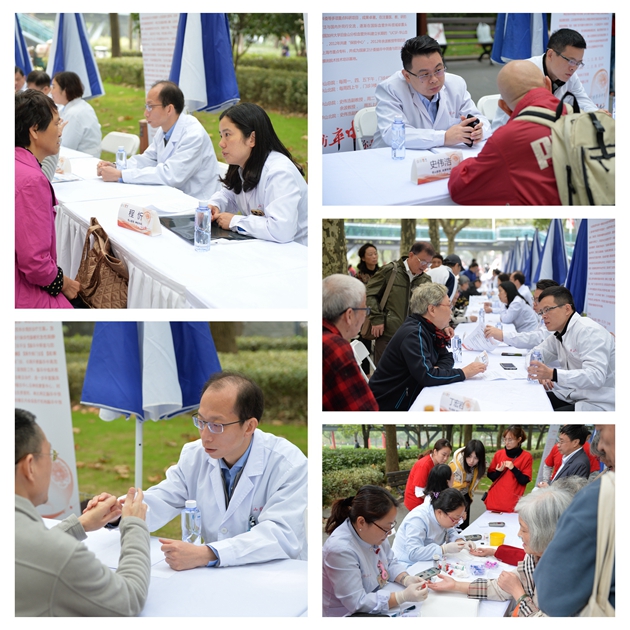 10月29日,是第12个世界卒中日。为配合世界卒中组织和中国卒中学会发布的今年世界卒中日宣传主题“预防卒中,你我同行”,也为纪念建院110年,华山医院联合中山医院在徐家汇公园成功承办了本市三地联动的脑卒中健康宣教和义诊市中心会场活动。近2个小时的活动,上海市脑卒中预防与救治服务体系30余家市、区两级临床救治中心的50位神经内科和脑卒中相关科室医疗专家,共服务群众200余人。40余位红手环志愿者参与活动,参考《上海市社区健康管理工作规范——慢性病综合防治(2017年版)》中的脑卒中高危人群标准,开展筛查110余人次,提供免费血脂检测60余人次。