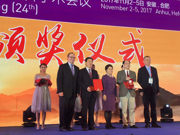 在11月3日举行的第二十四届全国泌尿外科学术会议开幕式上,华山医院泌尿外科主任沈周俊教授荣获2017年度吴阶平泌尿外科医学奖,受到隆重表彰。