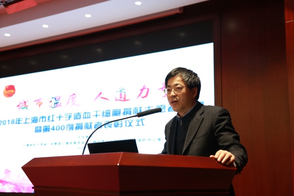 2月7日上午,由上海市红十字会、共青团上海市委员会、上海市青少年服务与权益保护办公室联合主办的“城市温度 人道力量” 2018年上海市红十字造血干细胞捐献志愿者活动暨第400例捐献者表彰仪式在华山医院门诊12楼会议厅隆重举行。上海市红十字会党组书记、常务副会长张浩亮,上海市青少年服务与权益保护办公室主任周建军,金山区副区长张娣芳,华山医院院长丁强、副院长马昕等领导出席。