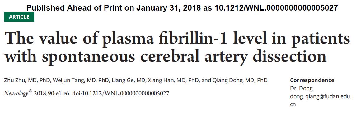 2018年1月31日,华山医院神经内科主任董强教授团队有关自发性脑动脉夹层(spontaneous