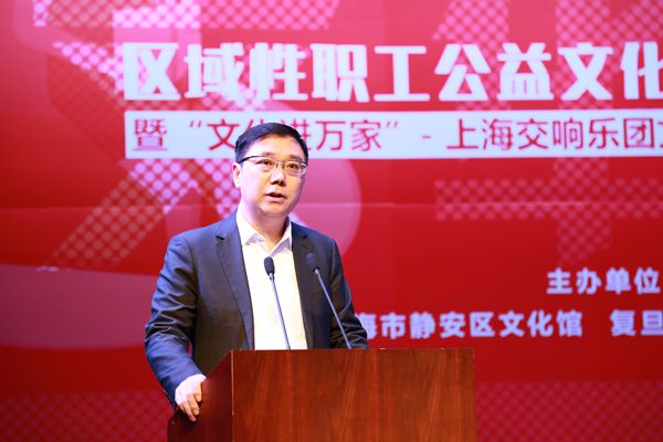 静安区人民政府副区长鲍英菁、上海市文化广播影视管理局公共文化处处长杨庆红、上海市总工会宣教部部长陈必华、上海市医务工会专职副主席何园等领导为共建基地揭牌。