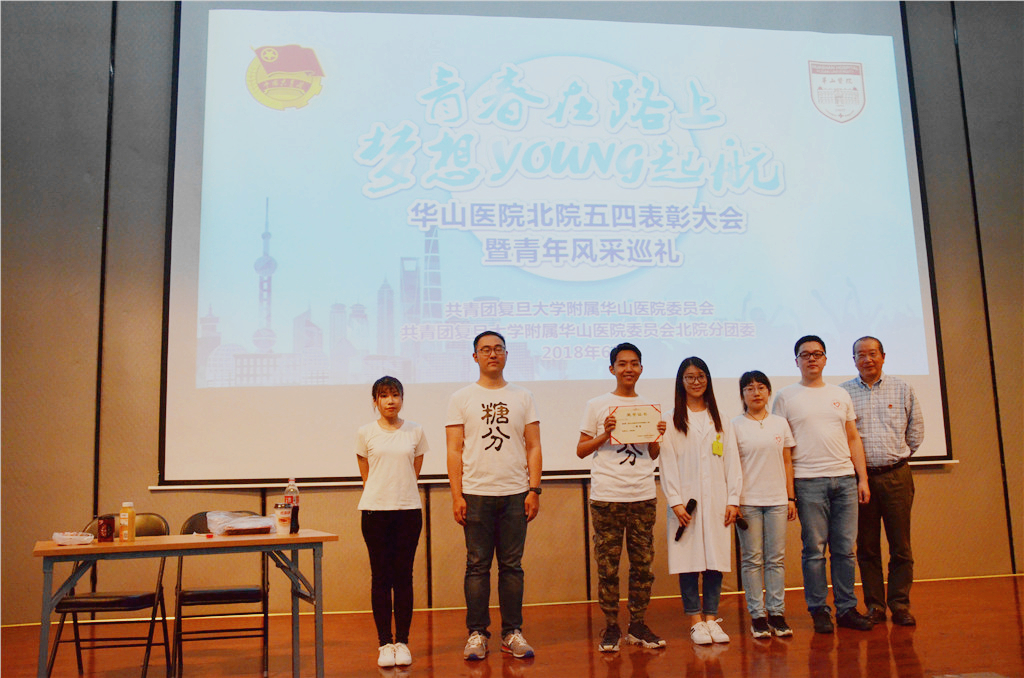 在4月底由院团委主办的华山第二届青年医学科普能力大赛中,北院机关团支部作品《确认过眼神,是离不开糖的人》荣获二等奖,朱会耕副院长为获奖集体颁发荣誉证书。